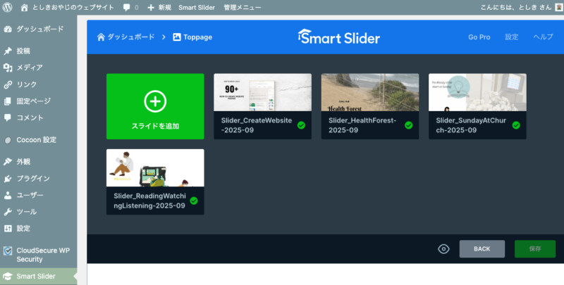 今回は、この Smart Slider 3 を使って、実際にスライドショーを導入してみました。