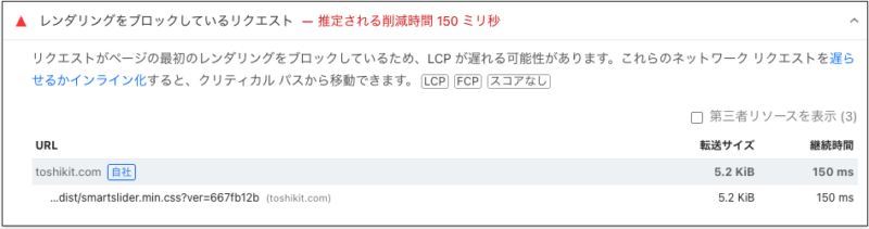 SmartSlider3 のsmartslider.min.cssや JS が “レンダリングブロッキング” と判定されるのは、